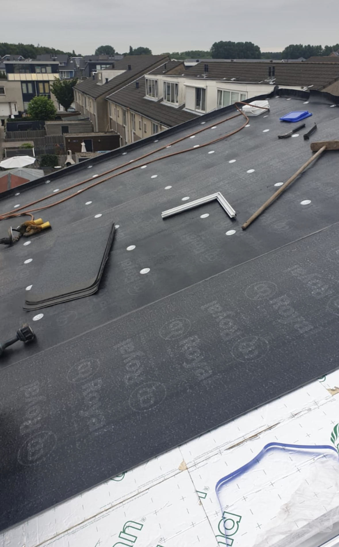 Het vernieuwen van een verouderd bitumen dak, inclusief dakisolatie