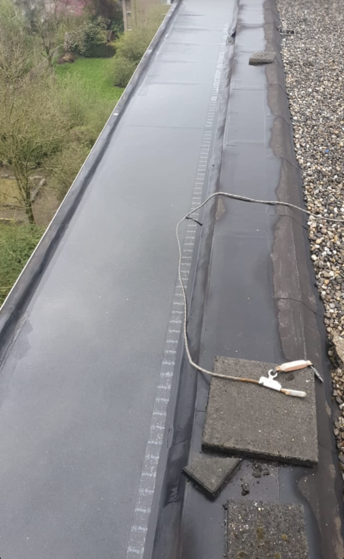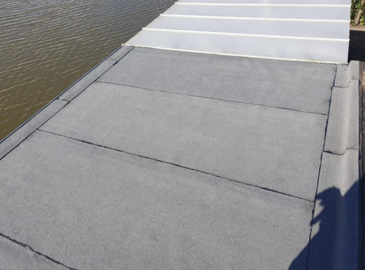Het verwijderen van de oude mastieklaag en de dakbedekking vernieuwd.